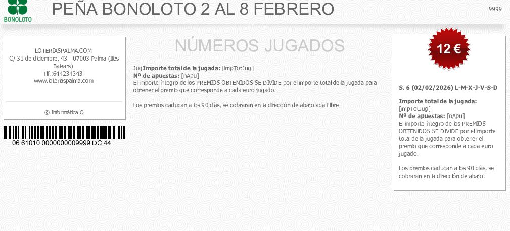 PEÑA BONOLOTO 2 AL 8 FEBRERO