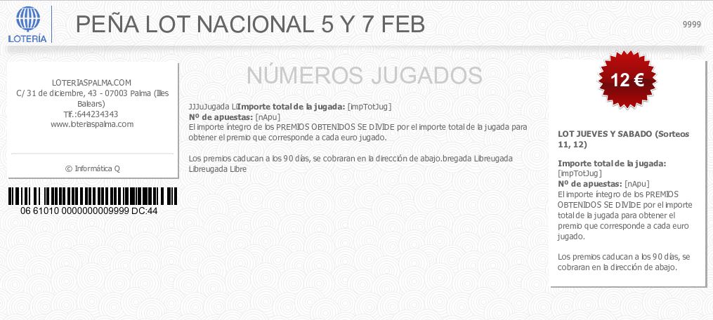 PEÑA LOT NACIONAL 5 Y 7 FEB