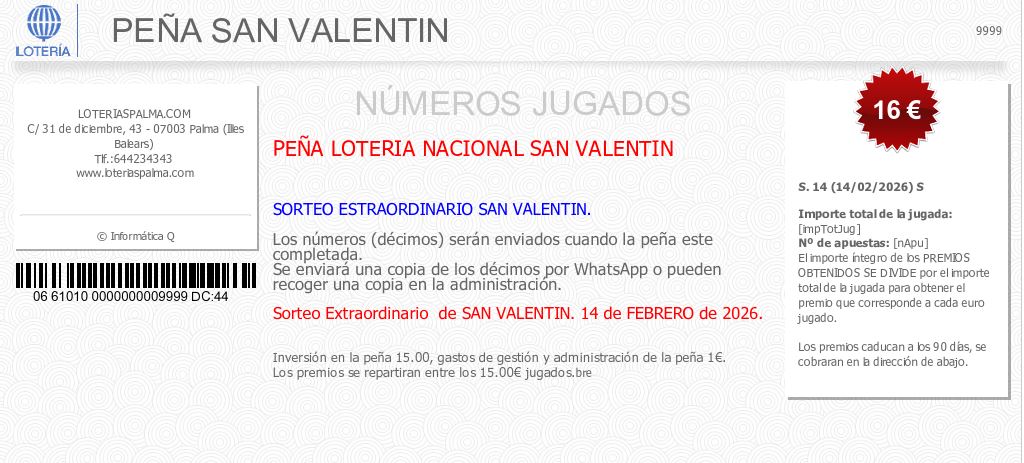 PEÑA BONOLOTO 16 AL 22 FEBRERO