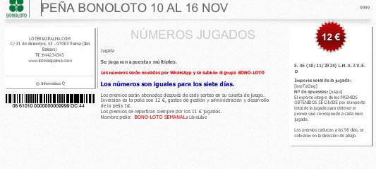 PEÑA BONOLOTO 3 NOV AL 9 NOV