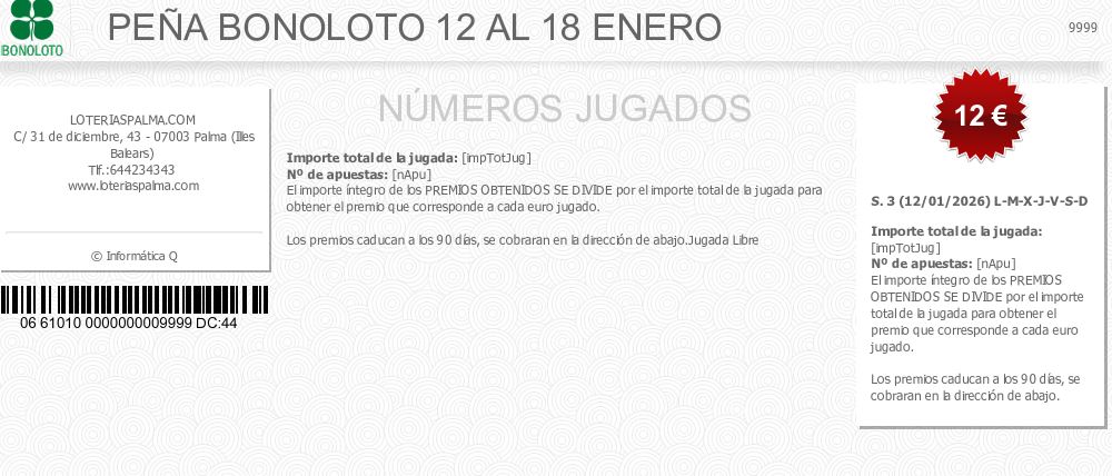 PEÑA BONOLOTO 12 AL 18 ENERO