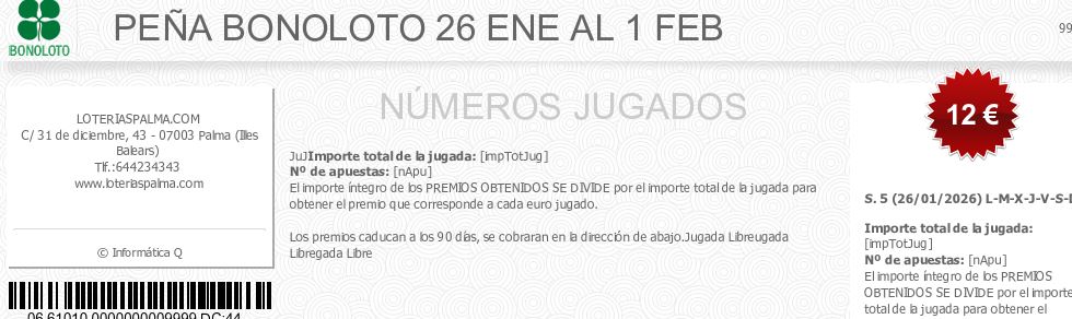 PEÑA BONOLOTO 26 ENE AL 1 FEB