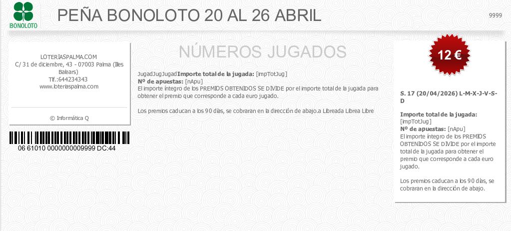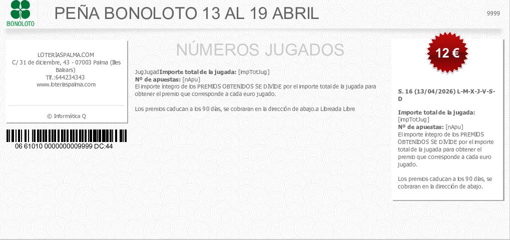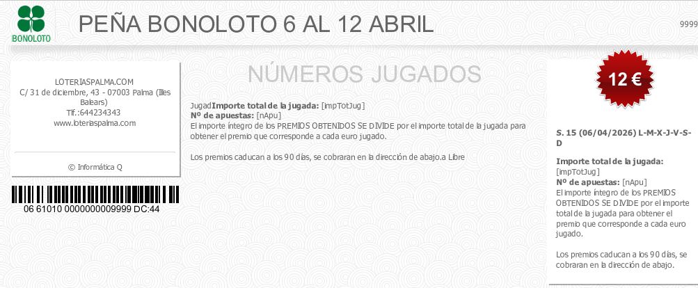 PEÑA BONOLOTO 6 AL 12 ABRIL
