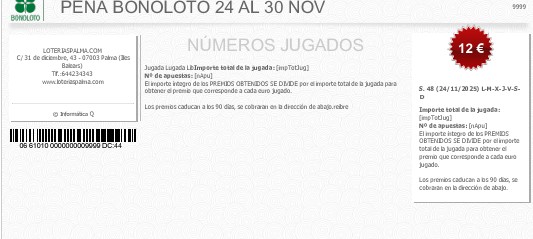 Juega en nuestra Peña de Bono-Loto.Jugamos cada semana de lunes a domingo, cada día los mismos numeros.Jugamos unos 600 € aproximados en los 7 días de la semana, unos 100 € diarios.