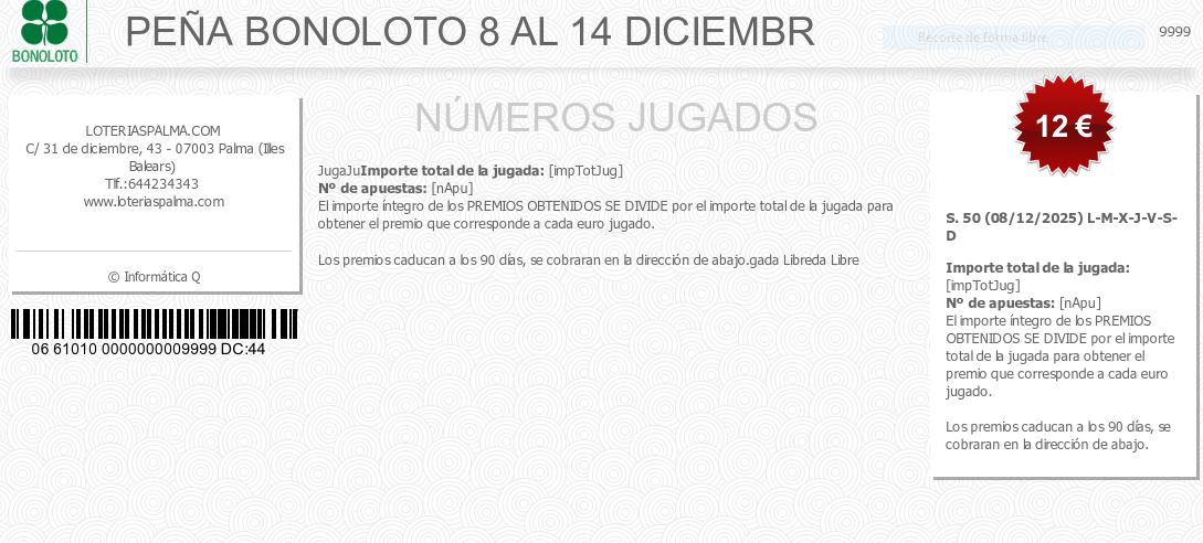 PEÑA BONOLOTO 8 AL 14 DICIEMBR