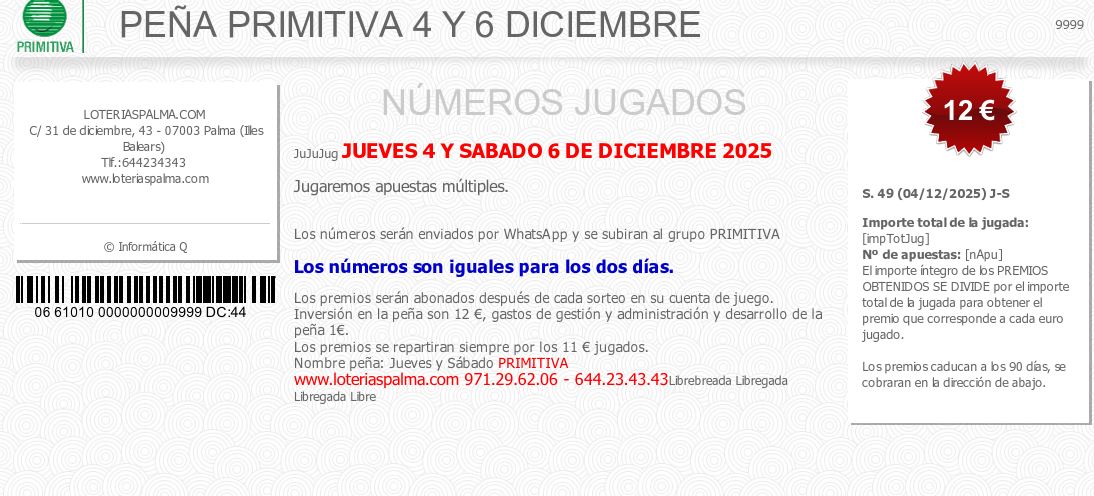 PEÑA PRIMITIVA 4 Y 6 DICIEMBRE